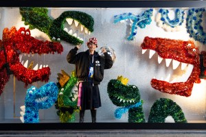 Joining the creative line up are photographer and artist Marcin Kempski and stylist Nathan Klein, who Selfridges has worked with to shoot the More The Merrier! campaign. Staged within a surreal model of the Oxford Street store façade dripping in festive décor, the campaign consists of three vignettes and features a cast of merry, maximalist passers-by and a Selfridges doorman in a pearly-king-inspired outfit.