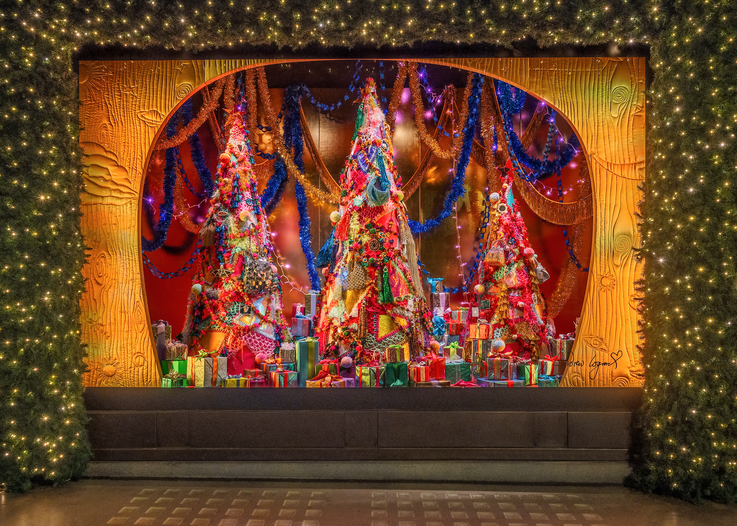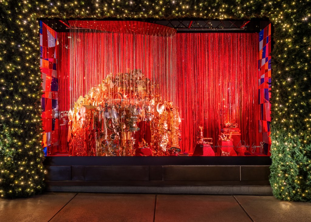 Selfridges Oxford Street windows have been inspired by the sculpture of British artist Andrew Logan and created in collaboration with Logan in the tradition of Christmas grottos. Each becomes a cave of wonder, where textures and patterns blend to create intricately crafted, luminous spaces, showcasing Logan’s smaller artworks, as well as touches of the mosaic mirror, vibrant colour and maximalist style he is known for. An installation of large scale artworks of his including Pegasus – Birth, Life & Death and The Universe of Smiles can also be seen at the Art Block, Selfridges permanent exhibition space in the Accessories Hall.