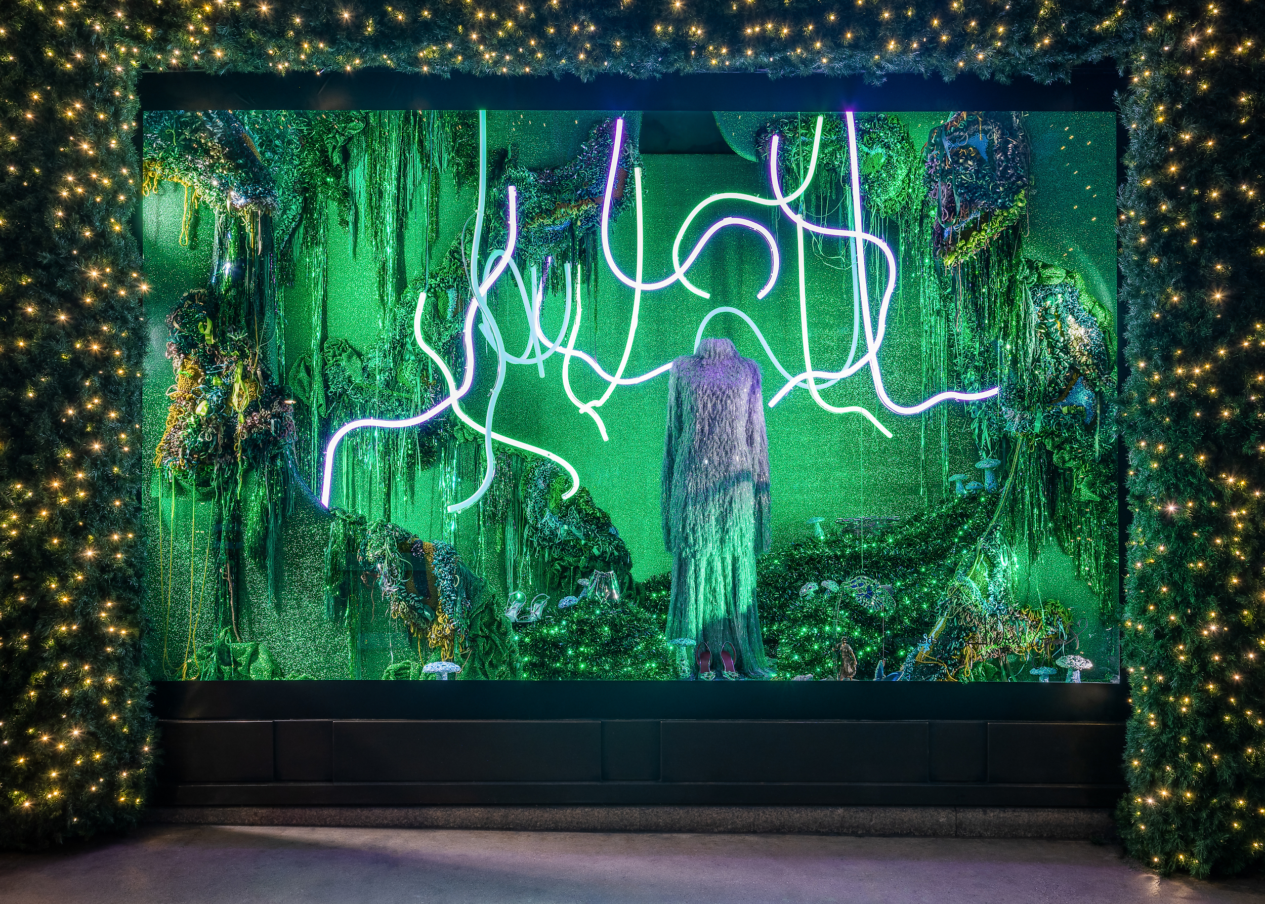 On Duke Street, Charles Jeffery interprets More the Merrier! with a three-character concept that brings mythical creatures to life, embodying a festive blend of hedonistic chaos and beauty. On Orchard Street, home to the Selfridges Artist Windows, Flaminia Veronesi also explores fantasy, mythologies and archetypes, creating imaginative, magical landscapes.